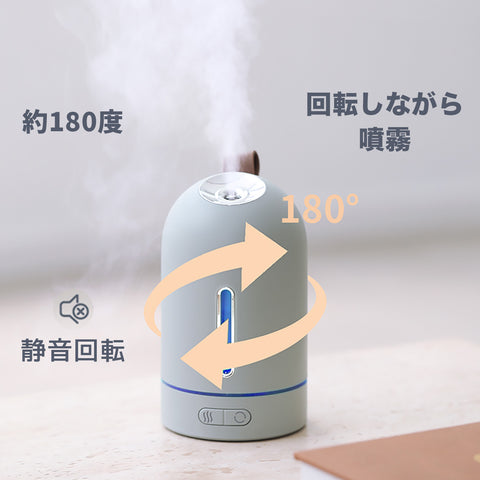 ボタンを押すと左右に約180度ずつ自動回転します。効率良くお部屋を潤してくれます。